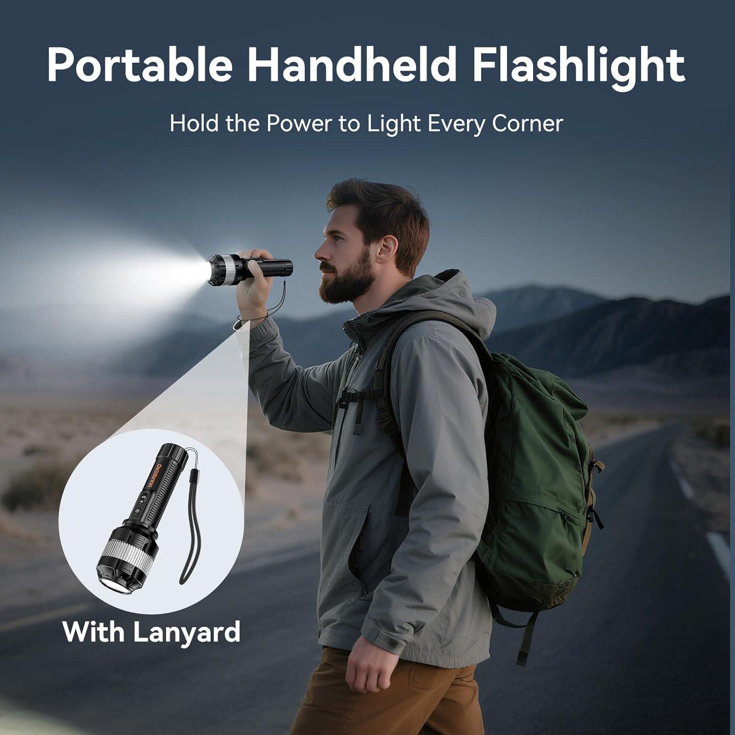 RECHARGEABLE & EMERGENCY POWER BANK: Equipped with a 4000mAh rechargeable battery and fast USB-C input, this flashlight fully recharges in just 2 hours. Provides up to 20.5 hours of runtime on low, 6.5 hours on high. Also functions as an emergency power bank for phones and small USB devices—just enough to stay connected in a pinch.