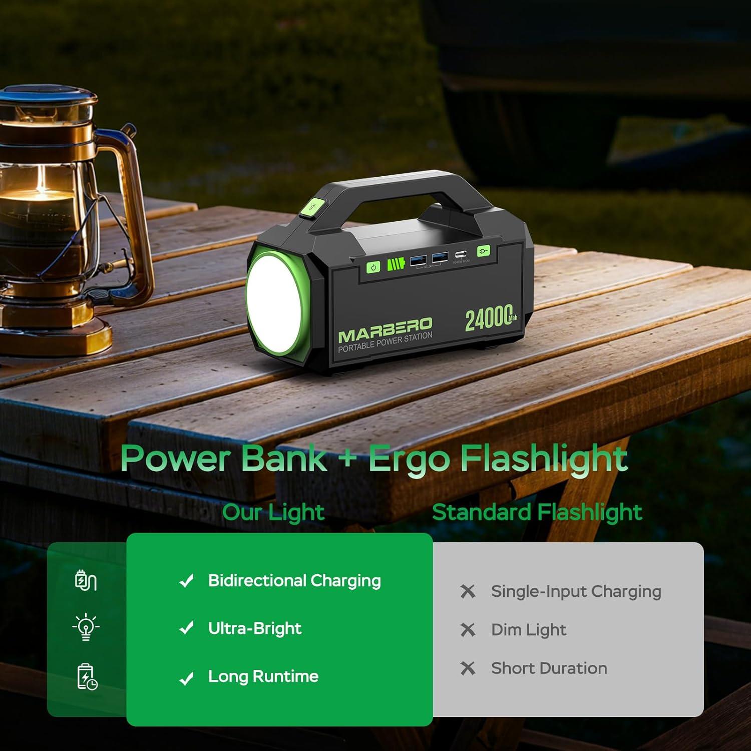 MARBERO Power Bank 60,000mAh Portable Power Station 222Wh with 60W PD Fast Charge & LED Light for Home Backup Outdoor Camping RV Travel and Emergency Power Supply(PL60DS-DC-177.6Wh)