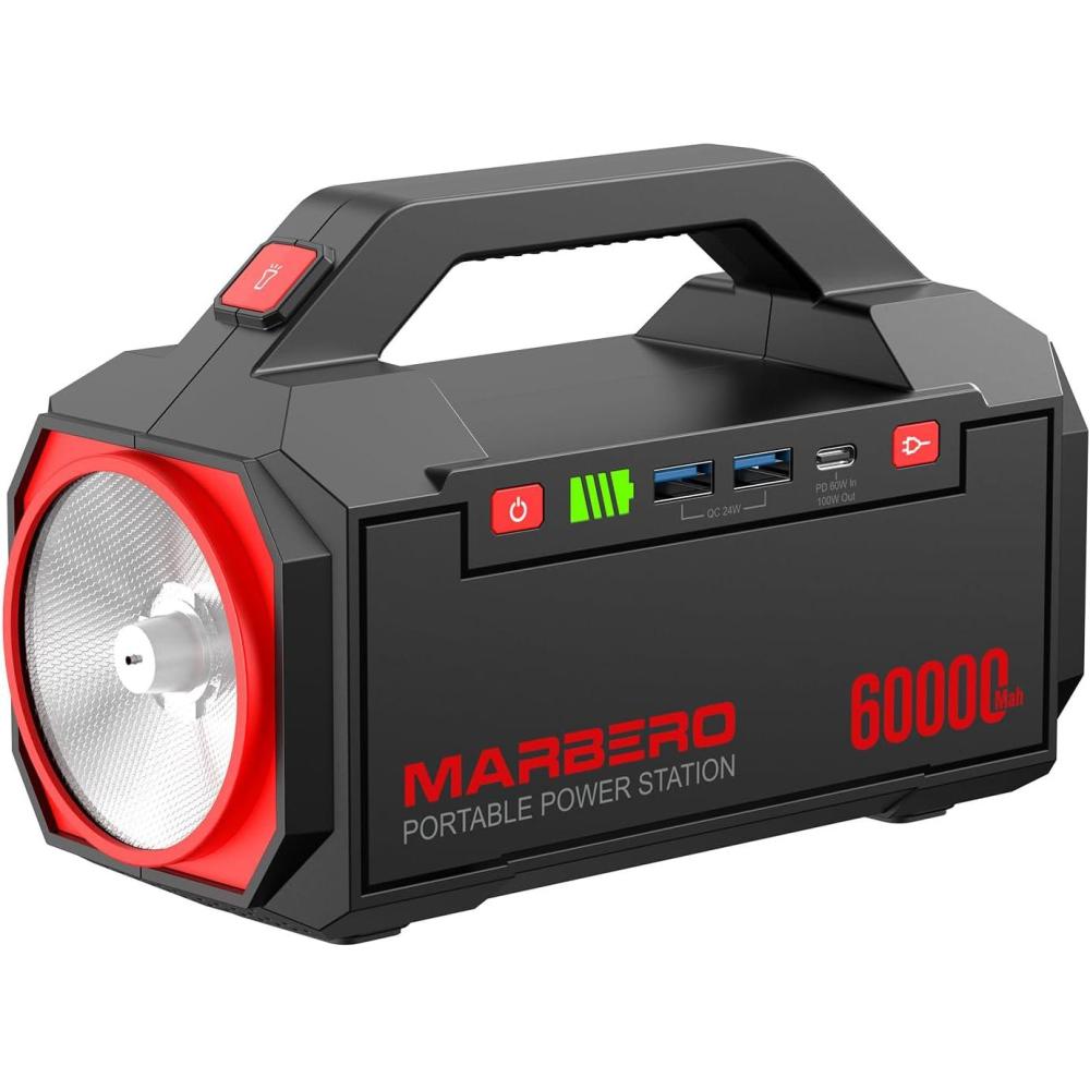 Be the first to review “MARBERO Power Bank 60,000mAh Portable Power Station 222Wh with 60W PD Fast Charge & LED Light for Home Backup Outdoor Camping RV Travel and Emergency Power Supply(PL60DX-DC-222Wh)”